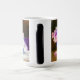 Magic Mug com um belo gatinho branco vestindo uma fita roxa! Este gatinho fluffy se posiciona próximo a uma tigela azul e um vaso de flores rosa, roxas e brancas. Um presente maravilhoso para amantes de gatos e entusiastas de arte vitorianos!