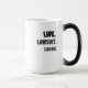 Engraçada caneca para o seu advogado favorito. O texto diz "Ao vivo. Ria. Processo." A justiça dimensiona a ilustração do lado oposto. A caneca faz Excelente aniversário ou para o advogado na sua vida. Presente de Advogado Engraçado, Lawyer Mug, presente de Graduação na Faculdade de Direito Promotor. Procurador de Justiça, advogado de lesões pessoais. Café, caneca de café.