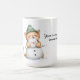 Gato bonito abraça o boneco de neve na alegria do inverno.