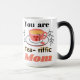 Uma citação da caneca "Tea-riffic Mamãe" é uma expressão encantadora e cheia de trocadilhos celebrando as qualidades extraordinárias de uma mãe. A peça sobre palavras combina "fantástico" com "chá", criando uma mensagem encantadora e iluminada. Esta citação sugere que a mãe a quem se faz referência não é simplesmente fantástica, mas tem um gosto especial pelo chá, acrescentando um toque pessoal ao elogio. É uma forma caprichosa de expressar admiração e amor por uma mãe que não é apenas excepcional, mas também aprecia os prazeres simples da vida, como tomar uma xícara de chá. Esta citação de caneca é perfeita para dar a uma mãe que ama o chá, trazendo um sorriso ao seu rosto enquanto ela aprecia sua bebida favorita.