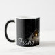 Caneca de boa qualidade, bom tamanho, não parece ser aquela louça que trinca ou descasca. Com os cuidados necessários, irá ter boa durabilidade. Antes de se colocar a bebida quente, ela fica preta, mas numa cor bem brilhante. Meu namorado é DJ e encomendei esta caneca pra um café da manhã com o pessoal da equipe! Sei q será o maior sucesso...em breve sei q vão pedir pra eu encomendar pra eles, e penso em fazer com o nome da empresa também. A caneca é muito legal, a coisa da trasmutação...mas o q não ficou muito legal foi a impressão da imagem da foto, não ficou como a foto q enviei...sei q mandei uma foto q é uma sombra, mas se as cores q estão em voltam aparecessem, ficaria bom. Na parte da frente ficou boa, mas atrás dele, a iluminação azul não saiu, ficando assim muito escuro, e não dá pra ver q é a sombra de uma pessoa. Se a Zazzle tivesse me enviado um e-mail dizendo q isso aconteceria, eu teria enviado uma foto mais clara, mas como a imagem de teste q tenho no site está nítida, pensei q fosse ficar assim. O chato q a caneca é presente, e a pessoa q ganhou, não consegue se ver na foto. Ficou sem propósito no final das contas. =(