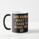 Caneca de boa qualidade, bom tamanho, não parece ser aquela louça que trinca ou descasca. Com os cuidados necessários, irá ter boa durabilidade. Antes de se colocar a bebida quente, ela fica preta, mas numa cor bem brilhante. Meu namorado é DJ e encomendei esta caneca pra um café da manhã com o pessoal da equipe! Sei q será o maior sucesso...em breve sei q vão pedir pra eu encomendar pra eles, e penso em fazer com o nome da empresa também. A caneca é muito legal, a coisa da trasmutação...mas o q não ficou muito legal foi a impressão da imagem da foto, não ficou como a foto q enviei...sei q mandei uma foto q é uma sombra, mas se as cores q estão em voltam aparecessem, ficaria bom. Na parte da frente ficou boa, mas atrás dele, a iluminação azul não saiu, ficando assim muito escuro, e não dá pra ver q é a sombra de uma pessoa. Se a Zazzle tivesse me enviado um e-mail dizendo q isso aconteceria, eu teria enviado uma foto mais clara, mas como a imagem de teste q tenho no site está nítida, pensei q fosse ficar assim. O chato q a caneca é presente, e a pessoa q ganhou, não consegue se ver na foto. Ficou sem propósito no final das contas. =(