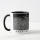 A descrição icónica do Aldrin do zumbido da superfície lunar brasonada em uma caneca preto e branco à moda com paisagem lunar original.