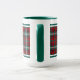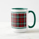 Uma caneca de café com o clã tartan Maguire, um padrão clássico de xadrez em vermelho vivo e verde florestal, com sotaques azuis reais, pretos e brancos cremosos. Estilos de arquivos disponíveis em dois tamanhos.