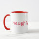 A caneca malvada e boa para os feriados. Um lado diz malvado, o outro diz bem.
