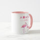 Trate o convidado de honra para esta charmosa caneca de "Mamãe a Ser" com dois flamingos de aquarelas e sotaques cor-de-rosa. Um bem-estar perfeito ou presente para um chá de fraldas de tema tropical. Excelente para tomar chá, café ou cacau em doce antecipação!