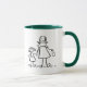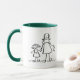Mãe e filha dão as mãos. A camisa da mãe dizia "mamãe" e a camisa da filha dizia "eu". Personalize esta caneca com seus próprios nomes usando o botão "Personalizar a imagem".