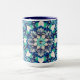 Esta mandala de flores azuis foi pintada com tinta acrílica.