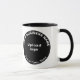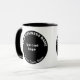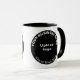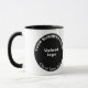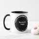 Combinação personalizável preta com marca comercial em forma redonda. Mug que você pode usar no seu compro de café, restaurante ou restaurante para criar reconhecimento de nomes de marcas enquanto seus clientes gostam de tomar café ou chá aromático e saboroso que você serviu a eles. Como produto de promocional, dê item ou presente a seus clientes ou clientes, uma estratégia de marketing para anunciar sua empresa ou promover sua marca. Para personalizar esta caneca, carregue o logotipo da sua empresa, digite o nome da sua empresa, cidade ou cidade e estado. Verifique a aparência nos lados frontal e traseiro após carregar o logotipo e os textos de digitação. Se a aparência lhe agrada, você pode colocar seu pedido agora. Se você precisar redimensionar e mover o logotipo e os textos para o ajustado na modelo desta caneca ou no tamanho e estilo que você escolherá, mude na ferramenta design. Você também pode fazer outras alterações na ferramenta design, como alterar a cor da fonte, o estilo da fonte, a cor da forma redonda e adicionar a cor do plano de fundo.
