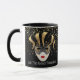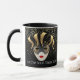 Esta caneca combo preta e branca tem uma imagem de uma máscara de Mardi Gras sobre pequenas estrelas a cores de ouro sobre um fundo preto. O texto de "Deixe os bons tempos rolar' está debaixo da máscara em Cada lado da caneca. Personalize este item ou comprar conforme projetado. Cores: manípulo vermelho e interior, fundo preto, estrelas ouros e máscaras douradas e pretas. Imagens e texto impressos em.