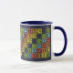 Uma caneca divertida para remadores, com um padrão geométrico feito a partir das letras de ROwing. A caneca é muito colorida, usando vermelho, laranja, amarelo, verde e azul, sobre fundo marinho. Celebre o seu esporte favorito à medida que desfruta do seu bem merecido chá ou café.