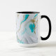 Esta caneca é uma obra-prima. Apresenta superfícies de mármore líquido, luxuosas e coloridas, e uma textura de mármore branco de abstrato de ouro turquesa de arte fluida. A design é uma bela obra de arte, feita com cuidado. Combina elementos como tinta, líquido e cor de turquesa de forma elegante e fascinante. No geral, tem um olhar visualmente cativante, porém organizado e aleatório. É o presente perfeito para aqueles que procuram algo verdadeiramente especial.