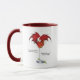 Um pequeno dragão vermelho giro se aproxima de uma azeitona verde em um copo de martini