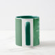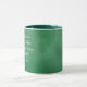 Esta caneca cristã tem o verso bíblia Matthew 11:28 para ajudar a confortar e encorajar aqueles que buscam força em uma fonte elegante contra um fundo verde.