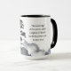 Uma caneca de café personalizada inspiradora mostra uma bela paisagem natural com montanhas e árvores. Apresenta a Bíblia Verse Matthew 13:11, "O conhecimento dos segredos do Reino do Céu foi-vos dado."