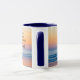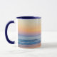 A caneca de café da Escritura Inspirativa retrata um belo pôr do sol amarelo, laranja e azul. Ele apresenta a Bíblia Verses Matthew 11:28, nas palavras de Jesus, "Venha até mim, todos vocês que estão cansados e sobrecarregados e eu te darei descanso."