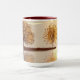Uma caneca de café inspiradora mostra o sol brilhando numa árvore e refletido na água. Ele apresenta uma parte de Jesus - 'Sermão no Monte' da Bíblia Verse Matthew 5:14, "Você é a luz do mundo."