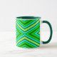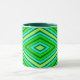 Mug de café num moderno século médio, repetindo o padrão diamante em faixas de verde e aqua de jade média e leve, acentuadas com preto