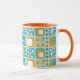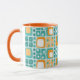 Caneca Meio século Quadrados e Pontos Padrão Teal, Laranj