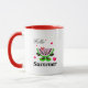 Caneca de café com melancia engraçada sobre fundo branco e texto OLÁ SUMMER