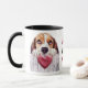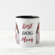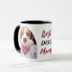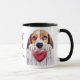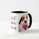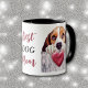 "Melhor Mãe de CACHORRO" declara esta caneca fofa no centro. A imagem em cada lado é de um Beagle adorável espiando por cima de uma cerca de madeira e oferecendo um coração vermelho brilhante. Perfeito para o Dia das Mães ou o aniversário dela! Todo o texto é personalizável, então você pode mudá-lo para o Papai no Dia dos Pais também.