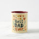 Mostre ao seu pai que ele é o melhor Pai de sempre com esta charmosa caneca. A design apresenta uma inscrição desenhada à mão rodeada por ilustrações florais e cardíacas doces em tons quentes e sujos, num fundo bege suave. Uma maneira amorosa e artística de expressar sua apreciação e celebrar o Dia de os pais com um presente verdadeiramente especial.