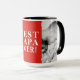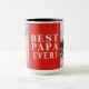 Melhor Papá De 2 Fotos Colagem Red Mug. Personalize a caneca com suas fotos - insira duas fotos no modelo. Tipografia moderna, branca, em negrito, Best Papa Ever, sobre fundo vermelho - você pode mudar qualquer parte do texto se quiser. Crie seu próprio dia do pai, aniversário ou presente de Natal para o pai.