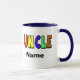 A cada 26 de julho, é o Dia das Tias e Tios. Mas, esta caneca pode ser enviada mesmo quando não é para essa observação, mas apenas para que um tio muito útil e solidário saiba que você o ama e o aprecia. Você pode alterar o texto dentro da faixa azul e personalizar com um nome. Você também pode comprar este design em qualquer uma das outras cores oferecidas, assim como em qualquer outro item de bebendo oferecido. Desenhado por Sheila Cicchi, Brownielocks.com. Todos os Direitos Reservados.