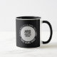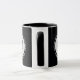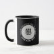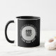 Uma caneca preta e branca para personalizar com sua própria foto (ou seu animal de estimação, logotipo, alguém especial ou qualquer outra imagem/corte circular), nome e texto curvo