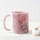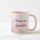 Esta caneca de bebida "nascida para brilhar" apresenta um design cintilante cor-de-rosa feminino, acentuado com uma flor prateada brilhante. A caneca pode ser personalizada com texto ou nomes. Esta encantadora caneca cintilante cor-de-rosa é um presente ideal, perfeito para indivíduos que apreciam a feminilidade, o romance, o charme e o amor por tudo o que é cintilante. O modelo de design está disponível para outros produtos, como almofadas, capas de iPhone ou cadernos. (Criado por IA por Susang6)