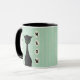 A caneca verde Médio-Século-Moderna do Meow retro dos gatos vem na luz, verde empoeirado com um teste padrão pálido da listra. Caracteriza os anos 50 adiantados de um clássico - gato preto retro do estilo do princípios dos anos 60 com os olhos esmeraldas scowling e o Meow as palavras do "gato" soletrado para fora em diamantes do marfim. Veja por favor nossa loja para outros artigos nestes design e design similar que você pode misturar e combinar