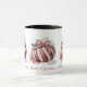 Feliz Natal Candy Candy Cane Sweet Mug. Perfeito para design de caneca Tea-Time. Esta design lembra os velhos tempos com suas cores clássicas e decoração de folhas verdes. O calor da pintura aquarela faz você se sentir aconchegante e pode ser a caneca perfeita enquanto tira tempo da corrida diária para relaxar e desfrutar dos prazeres mais silenciosos da vida. Você pode personalizar cada uma das 3 letras Feliz de Natal com sua saudação ou nome.