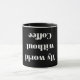 texto tipográfico que diz Meu mundo sem café, colocado de ponta-cabeça. se você mudar o fundo preto e apenas quiser branco, você terá que mudar a cor do texto ou ele não será visto.