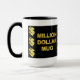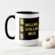 Caneca com uma afirmação positiva: "MILHÃO CANECAS do DÓLAR - MEU PRIMEIRO MILHÃO ESTÃO em SUA MANEIRA A MIM" no ouro escrevendo com sinais de dólar dourados em um fundo preto. Use esta caneca cada dia para reprogram sua mente subconsciente com uma atitude da expectativa a fim manifestar o sucesso e a riqueza finais. Seu também o presente perfeito para amigos, família ou colegas de trabalho como empreendem um projeto especial com o objectivo de se tornar financeira bem sucedidos.