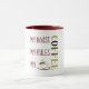 Simples, engraçada, chica, monótona burgundy e ouro: Minha Casa Minhas Regras Minha Mug de Café com uma ilustração fofinha de café.