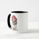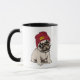 Características deste design um pug bonito do filhote de cachorro do hipster em um boné vermelho do beanie.