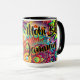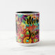 Uma xícara de café vibrante e colorida com um pequeno cachorro (Rat Terrier) que está esportando seus maravilhosos cadeados. Você será notado, jamin com sua xícara de jo, java, chá, cacau ou chocolate quente. Tudo nesta caneca pode ser mudado, mas você não será jammin, Divirta-se com esta pequena xícara de alegria.