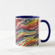 This is a Habatour Creations coffee mug, decorated with an authentic modern abstract geometric digital pattern design with wavy lines.