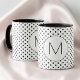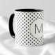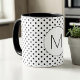 Modern Black and White Initial Monogram Polka Dot Mug.