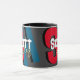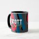 Stylish coffee mug personalized with his name in cool font style, and with big oversized initial letters with black shadow... a modern monogrammed design.