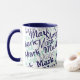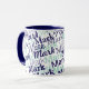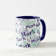 Typography pattern of blue color names (works better for a short name), diagonally printed all over the ceramic mug.