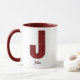 Enjoy a stylish touch of sparkle with this modern glitter monogram mug. The bold glitter-style initial pairs beautifully with a personalized name in a clean, minimal layout. Featuring a matching red handle and interior, this mug is the perfect blend of trendy and elegant. Makes a thoughtful personalized gift for Christmas, winter holidays, birthdays, teachers, coworkers, or anyone who loves modern glitter designs.