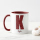 Enjoy a stylish touch of sparkle with this modern glitter monogram mug. The bold glitter-style initial pairs beautifully with a personalized name in a clean, minimal layout. Featuring a matching red handle and interior, this mug is the perfect blend of trendy and elegant. Makes a thoughtful personalized gift for Christmas, winter holidays, birthdays, teachers, coworkers, or anyone who loves modern glitter designs.