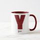 Enjoy a stylish touch of sparkle with this modern glitter monogram mug. The bold glitter-style initial pairs beautifully with a personalized name in a clean, minimal layout. Featuring a matching red handle and interior, this mug is the perfect blend of trendy and elegant. Makes a thoughtful personalized gift for Christmas, winter holidays, birthdays, teachers, coworkers, or anyone who loves modern glitter designs.