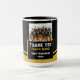 Modern Team Name Photo Coach Thank you Mug. Show your appreciation for a dedicated coach with this modern and stylish thank you mug. Bold gold and black design, and space for your own team photo, this customizable gift is perfect for end-of-season celebrations or gifts from the team. Personalize with your coach’s name, team name, and year to make it truly special. Easily edit text fields for your coach and team. Upload your own photo of the team. Great for basketball, sports clubs, or youth leagues.