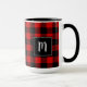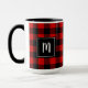 Personalize este design clássico e na moda dos homens personalizados que caracteriza um tartan da verificação da xadrez do búfalo vermelho e preto com sua própria inicial do monograma mão na moda na tipografia rotulada do roteiro em cima de um quadrado preto.