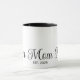Mom Established New Mom Mug - Minimal Elegant Black Script Mom Typography - Add your custom "Est" established year date when your first child was born. Add additional years for each child. Switch out the date and switch "mom" for how you call your mum or mam.