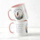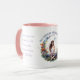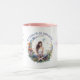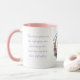 Una hermosa taza con ilustración en acuarela: una mujer meditando bajo una luna rodeada de flores silvestres, con la frase: "En el silencio del ser, sonrió con paz".