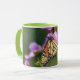 This pretty mug features my original photograph of a Monarch butterfly enjoying a garden of Cosmos flowers. The handle and inside of the cup are green tone to complement the artwork.