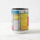 As presentes e acessórios da linha amarela, rosa, azul e negra de Mondrian mostram nossa arte texturizada de inspiração de Piet Mondrian com nossa única textura e cores em padrões geométricos de abstrato criados por nosso talentoso artista e desenhista, Kurt Keller.